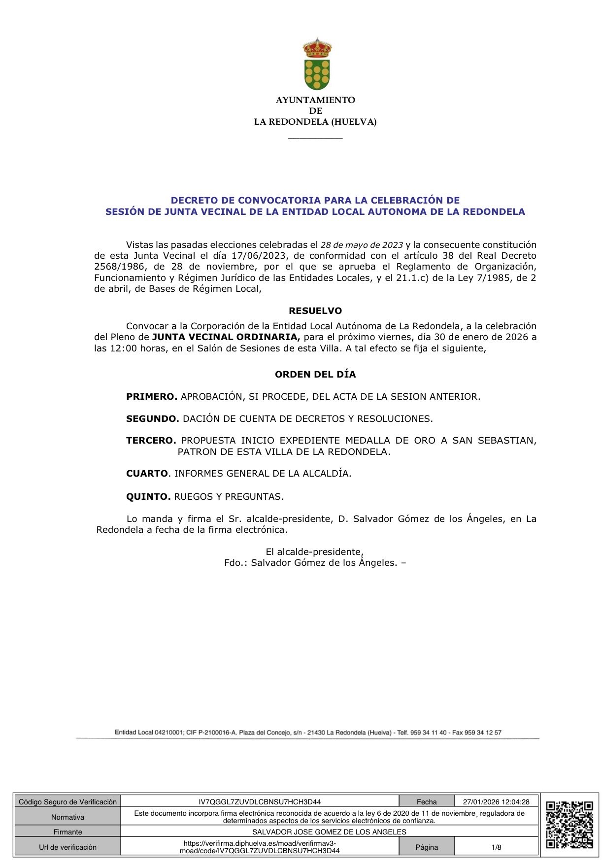 CONVOCATORIA PLENO ORDINARIO ENERO 2026